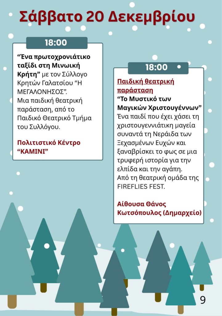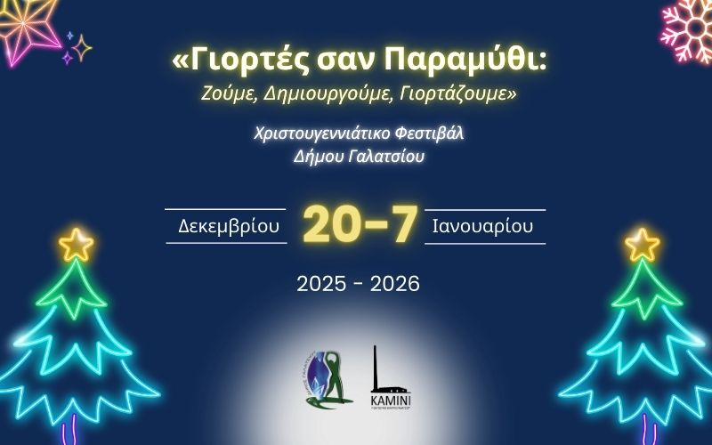 Ξεκινάει αύριο, Σάββατο 20 Δεκεμβρίου 2025, το χριστουγεννιάτικο Φεστιβάλ Δήμου Γαλατσίου 2025-2026, με ελεύθερη είσοδο