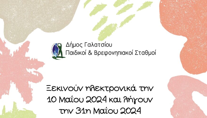 Οι εγγραφές και οι επανεγγραφές για τους Παιδικούς/Βρεφονηπιακούς Σταθμούς Δήμου Γαλατσίου ξεκινούν την 10η Μαΐου 2024 και λήγουν την 31η Μαΐου 2024.