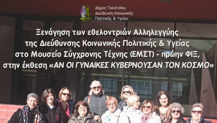 Ξενάγηση των εθελοντών και των εθελοντριών Αλληλεγγύης της Διεύθυνσης Κοινωνικής Πολιτικής & Υγείας στο Μουσείο Σύγχρονης Τέχνης (ΕΜΣΤ) πρώην ΦΙΞ, με θέμα «ΑΝ ΟΙ ΓΥΝΑΙΚΕΣ ΚΥΒΕΡΝΟΥΣΑΝ ΤΟΝ ΚΟΣΜΟ», την Παρασκευή 13-12-2024, στο πλαίσιο της ευγνωμοσύνης και της ηθικής αναγνώρισης της συνολικής προσφοράς τους.